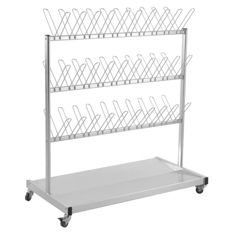 Hely 60 cipő vagy bakancs számára. Kerekek: 4 kormányzott kerék, közülük 2 fékkel.