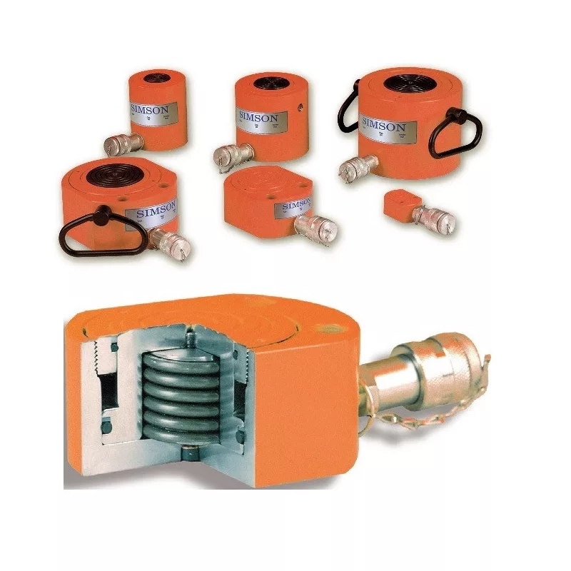 LHS egyirányú működésű, lapos Simson munkahenger, rugó visszahúzással 4-150 tonnáig.
