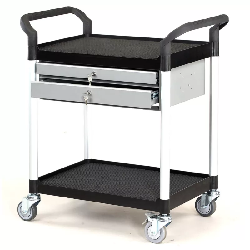 Asztalkocsi 909B-2L, 2 polcos fekete, 2 fiókkal