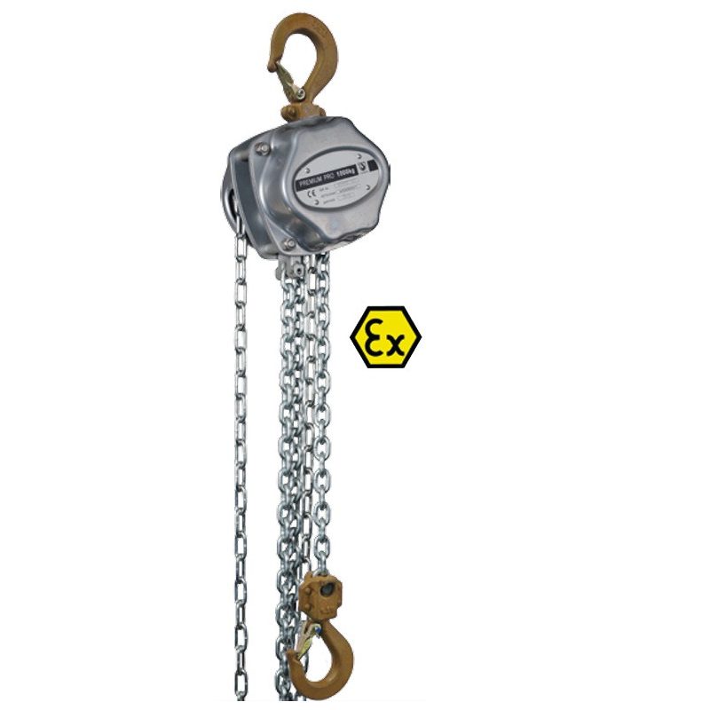 A PREMIUM PRO EX különleges felületkezelést kapott, és úgy lettek megtervezve, hogy lehetővé tegyék a kézi láncos emelők használatát robbanásveszélyes környezetben is. Megfelel az EC irányelveknek (2014/34/EU ATEX szabványok).